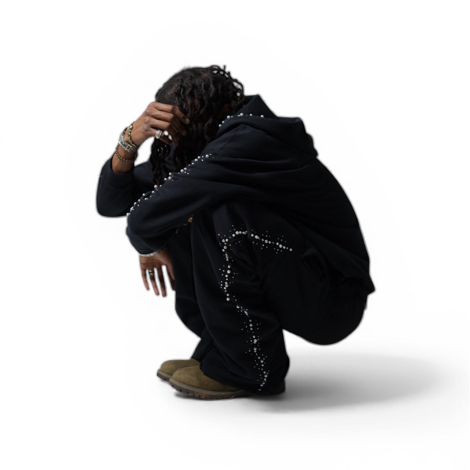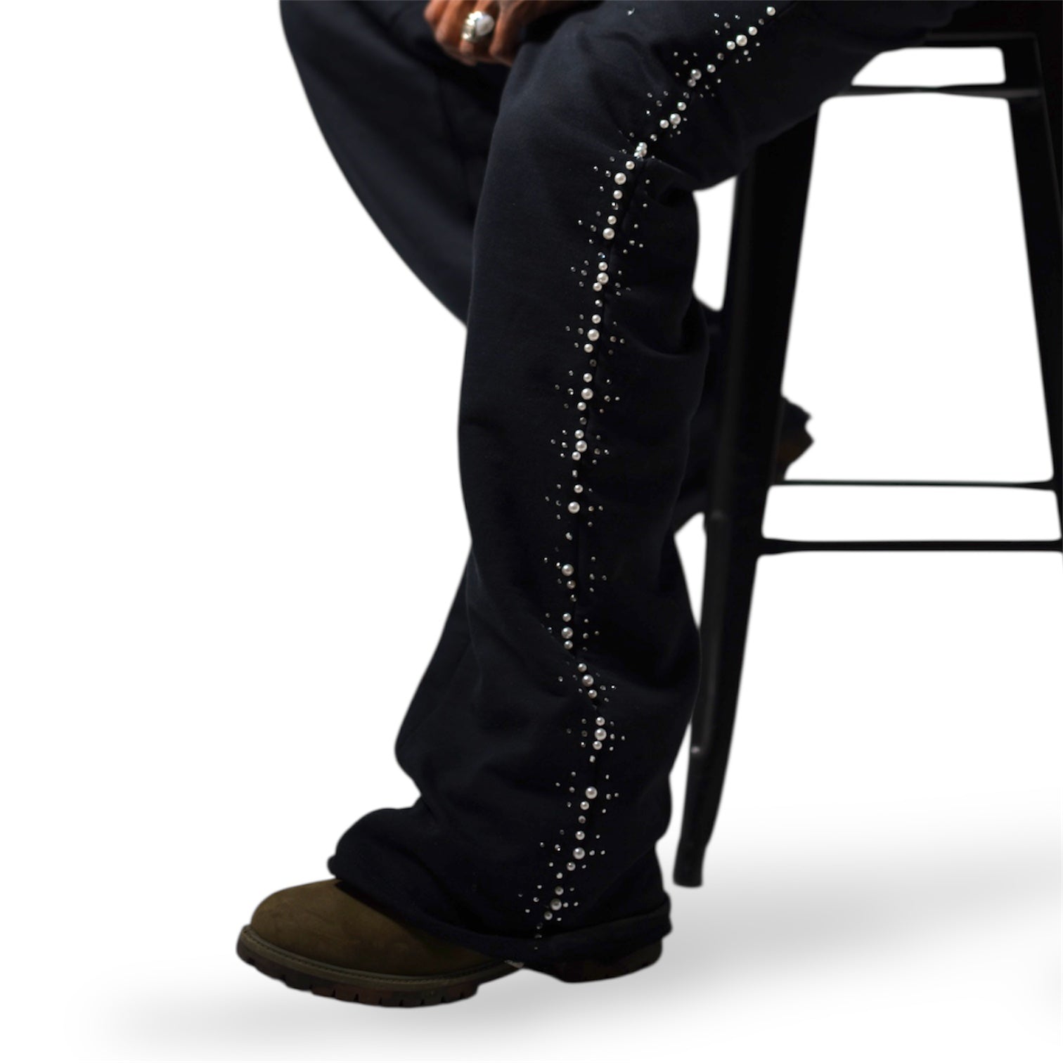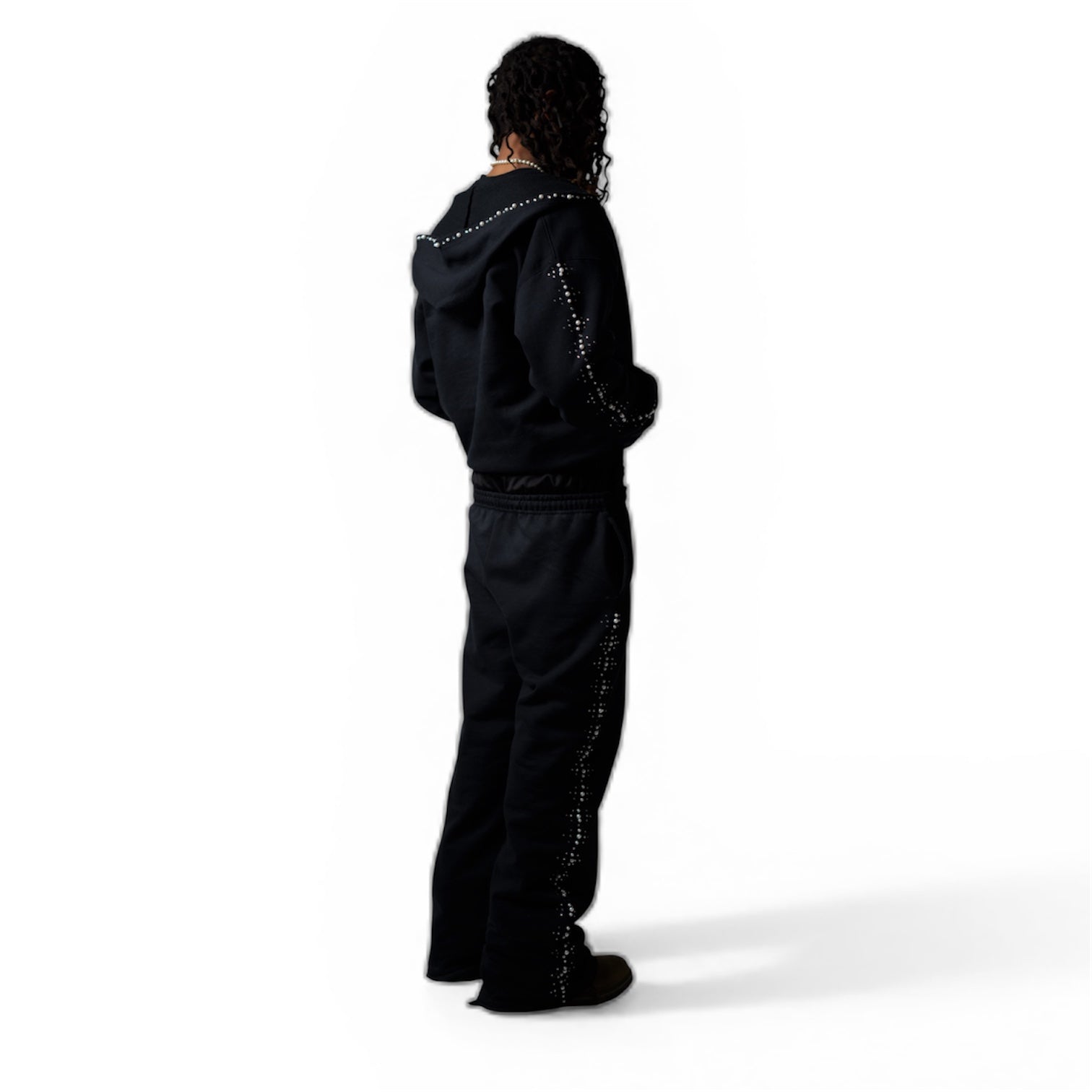 Designed for elevated comfort and understated luxury, these handmade relaxed-fit pearl embellished sweat suits deliver a refined silhouette without sacrificing ease. Crafted from high-quality materials, each pair is individually finished with hand-applied pearl and gem detailing that adds subtle texture and dimension.